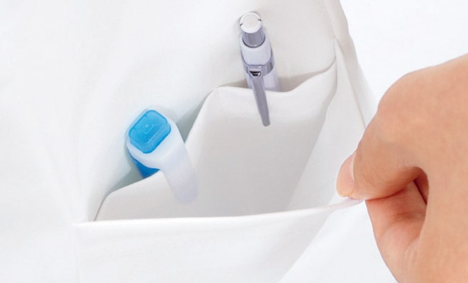 ショート丈のスタンダードタイプのレディスドクターコートサイズ表